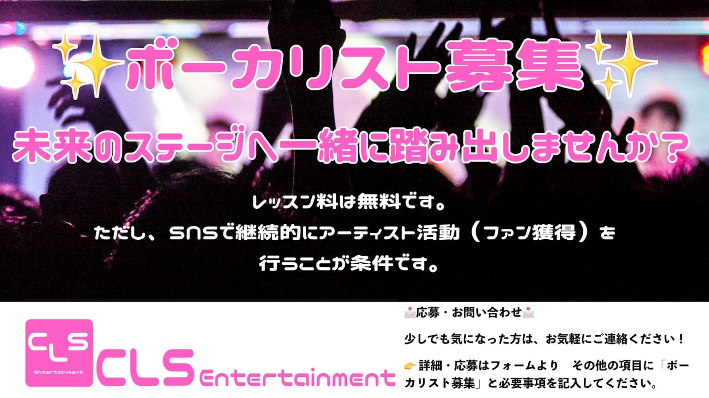 CLS Entertainmentでは、本気で音楽活動に取り組みたい女性を募集しています。